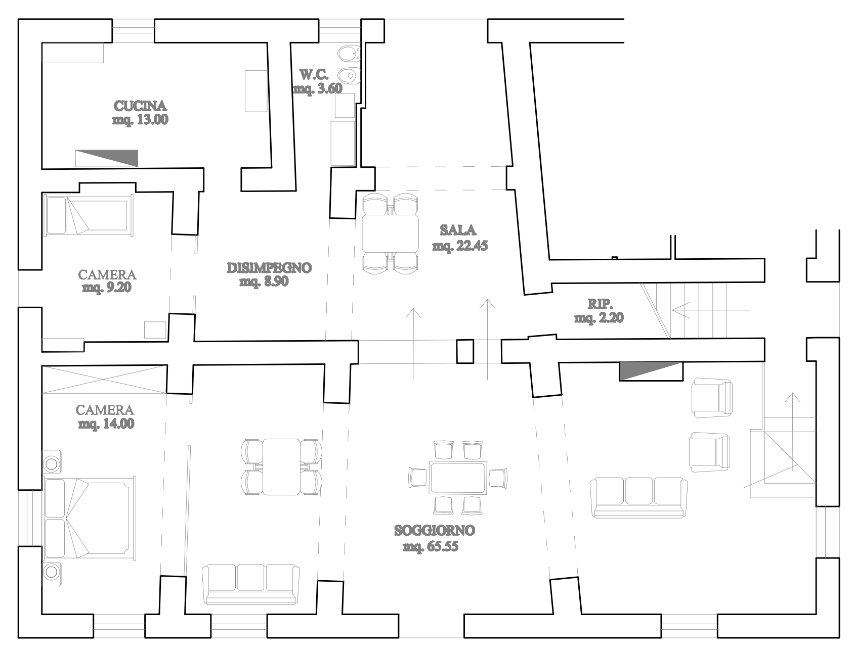 A light-filled 140-sqm retreat blending a grand fireplace living room, refined bedrooms, and modern comforts for an effortless stay in the Umbrian countryside. Located on the garden level of Villa Voce degli Angeli (Villa 1 on the homepage map).